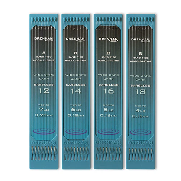 De Drennan Wide Gape Pellet Hooklenghts lenen zich perfect voor het vissen op commercials met zachte pellets. De Wide Gape haak zorgt voor een goede inhaking, zo kan er extra druk gezet worden tijdens de dril. De Wide Gape Pellet Hooklenghts worden geleverd op een handige winder, zo bent u er zeker van dat de onderlijnen in perfecte staat uit de verpakking komen.